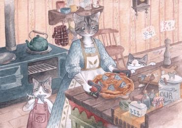 Hannah attended the University of Wyoming and California State University, Fullerton, receiving a BA in Art and an MFA in illustration, respectively. Hannah’s passion lies in children’s illustration, though she has a background in scientific illustration, working with professors and research departments from the University of Wyoming, Princeton University, and UC Riverside. Her love for children’s books, fairytales, science, and animals, have come together to create her narrative and detailed watercolor illustrations, telling stories of childhood, imagination, connection, and discovery, through the lens of cats in overalls.